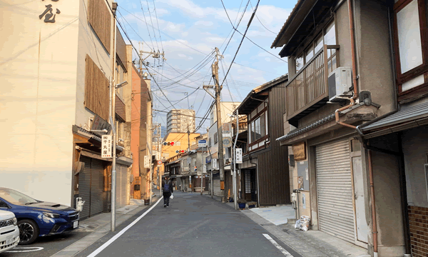 JR東海道線大津駅から琵琶湖に向かい、県庁前通り界隅から寺町通りまでの東西に走る中町通、浜通りに沿って中心市街地に広がる商店街です。