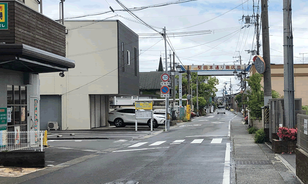 JR堅田駅を中心に商店がある広域型商店街です。駅から南へ10分ほどで多目的ホールがあります。ここは地域の方のコミュニティホールですが、商店街のメンバーと地元の生産者が商品を持ち寄り、朝市をしています。 (新鮮な野菜、お花、お弁当、お惣菜、お寿司、和菓子、日用品など)